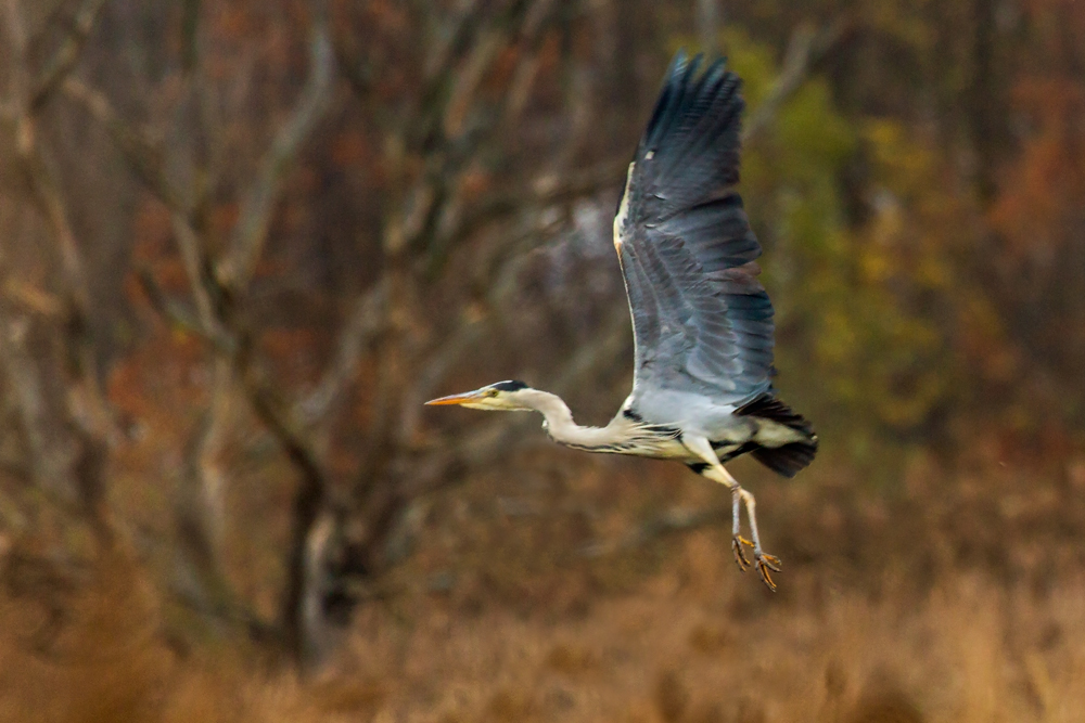Ein aufgescheuchter Graureiher im Stargarder Bruch