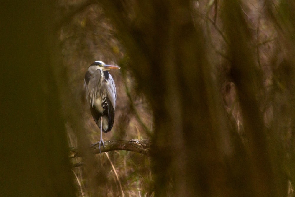 Habe diesen Graureiher durch die Äste hindurch fokussiert. Wirkt geheimnisvoll, oder?